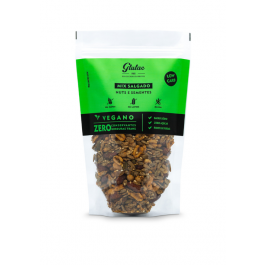 INGREDIENTES: amendoim, semente de abóbora, castanha de cajú, amêndoas, castanha do pará, semente de girassol, azeite de oliva, sal do himalaia, alecrim, pimenta do reino. Não contém glúten. Rico em fibras. Sem soja. Contém inulina.